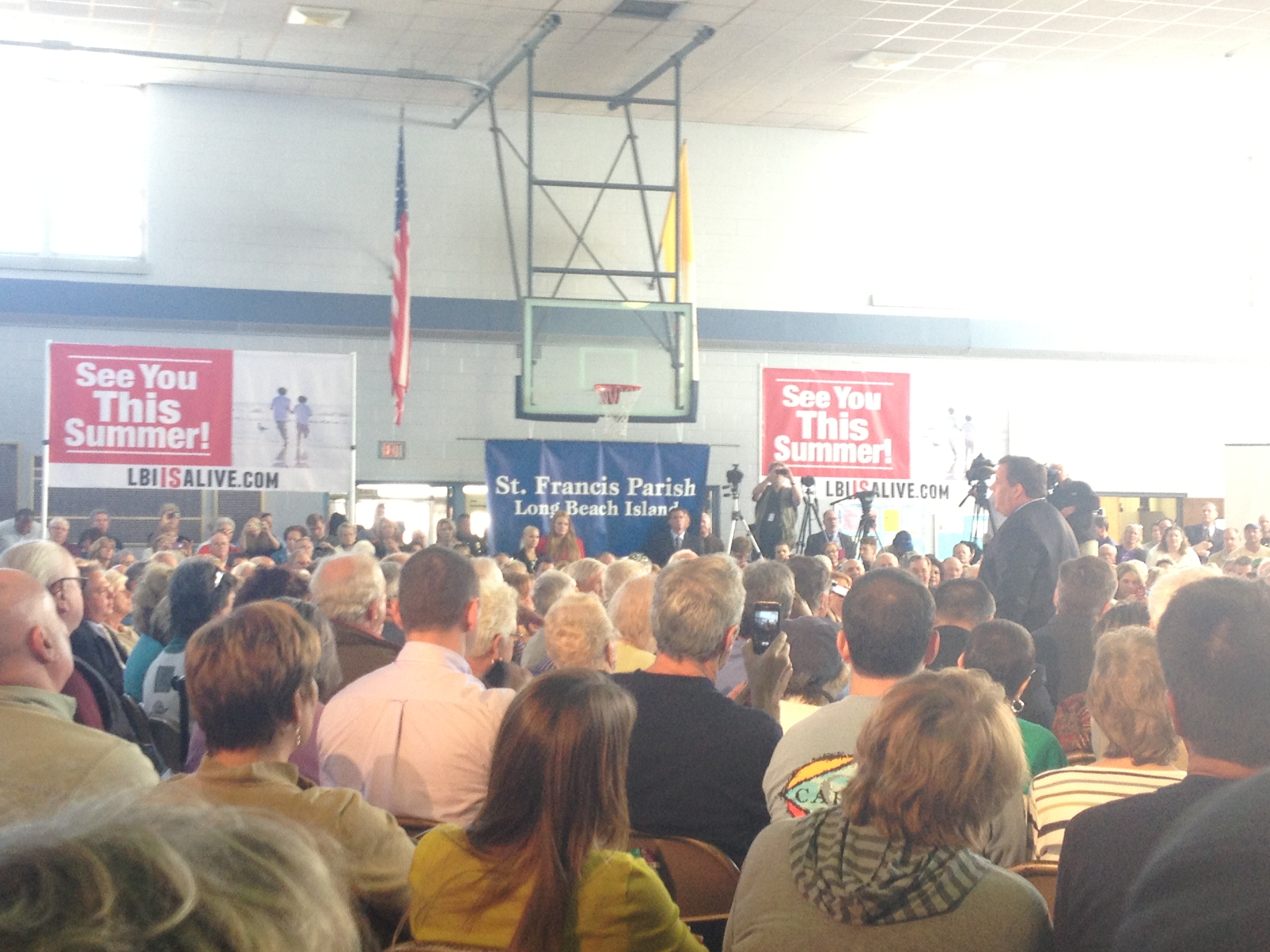 Which would act as the backdrop for all the cameras recording the town hall (or so we hope). It was a great town hall, progress is being made and will continue to do so. Check out 6abc, Fox and Channel 9 WOR (I am not sure where or who they are, maybe NYC?, but I saw the truck) for total coverage. It was a positive meeting and I think we all learned a lot of new, helpful information. And thank you to Governor Christie for coming down and taking the time to speak to us. What I can tell you, is that the bay will be cleaned up by June and dredging of the inlets will start as well. The new FEMA flood maps and elevations will be posted in 3-4 weeks. And the dunes ARE going to be replenished — end of story, according to Gov Christie.