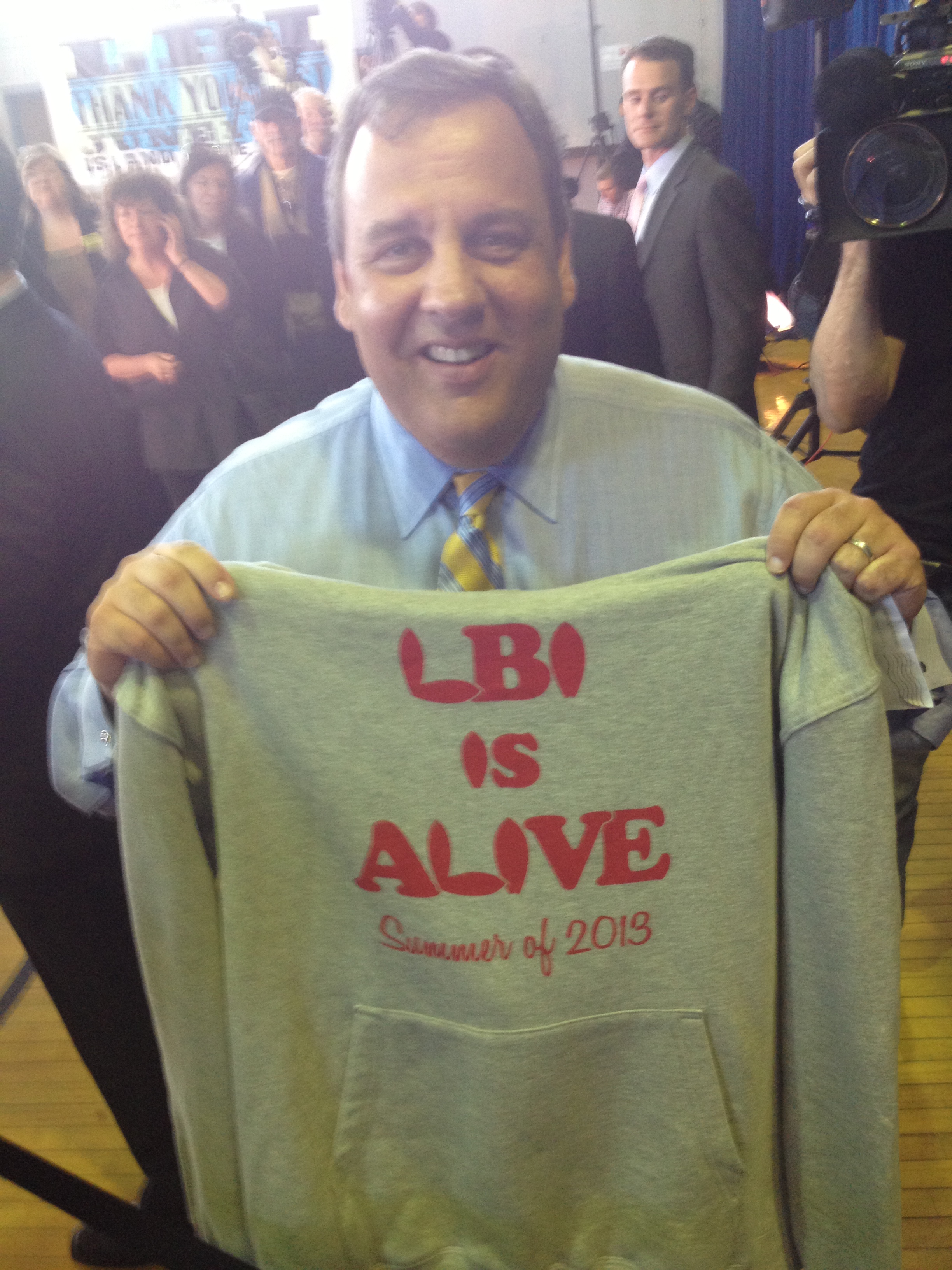 My “end of story” spiel: Be like Christie, get your LBI is Alive Apparel. He shows LBI is Alive and you should too!